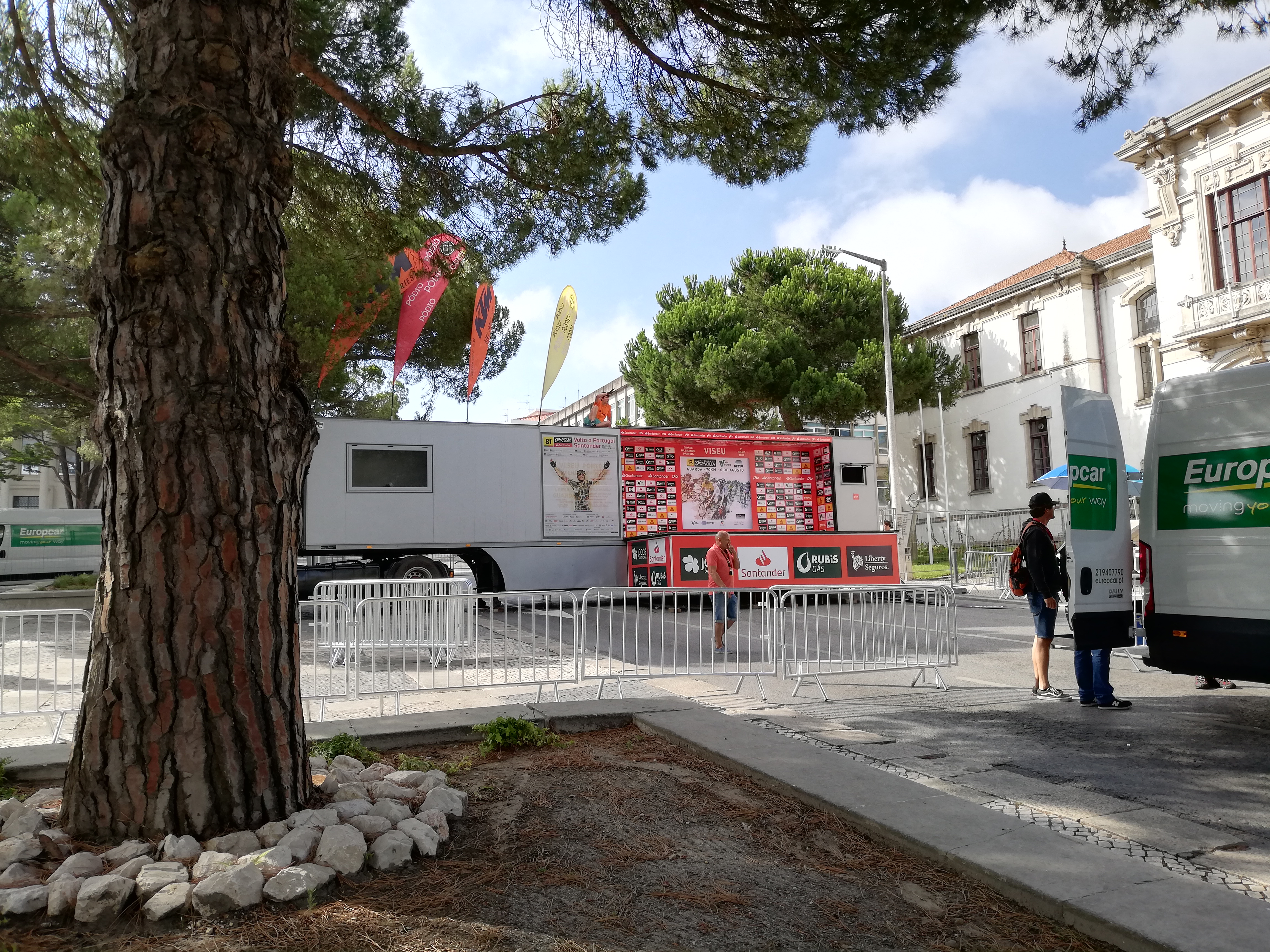 Há também um espaço reservado para os carros de apoio das 19 equipas que participam na prova e também para os estúdios móveis da comunicação social. A primeira etapa desta edição da Volta a Portugal é considerada de média dificuldade nos 174,7 km que a compõem.