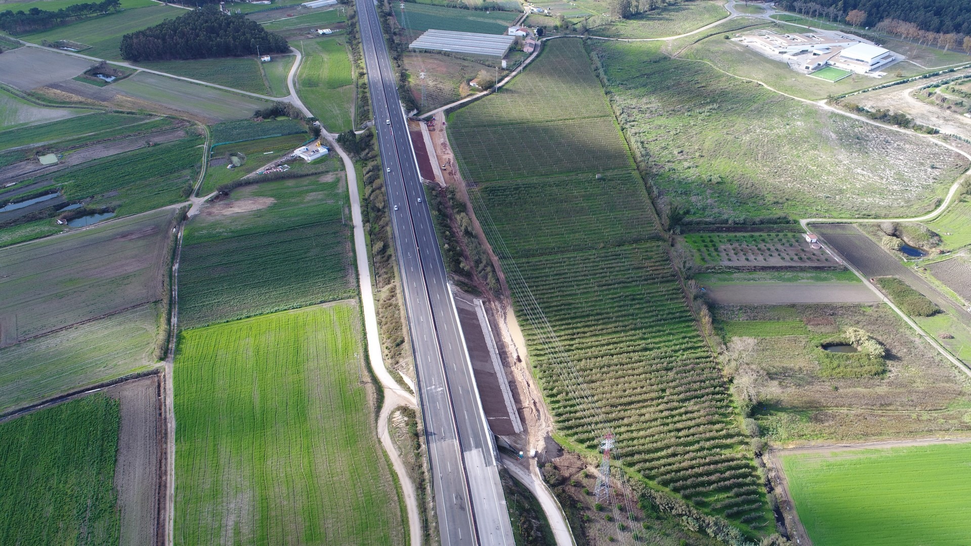 Os trabalhos contemplaram, entre outras intervenções, o reforço do aterro com colocação de malha de estacas, a execução de um maciço de encabeçamento em betão armado e geogrelha de reforço, e construção de muros de suporte.