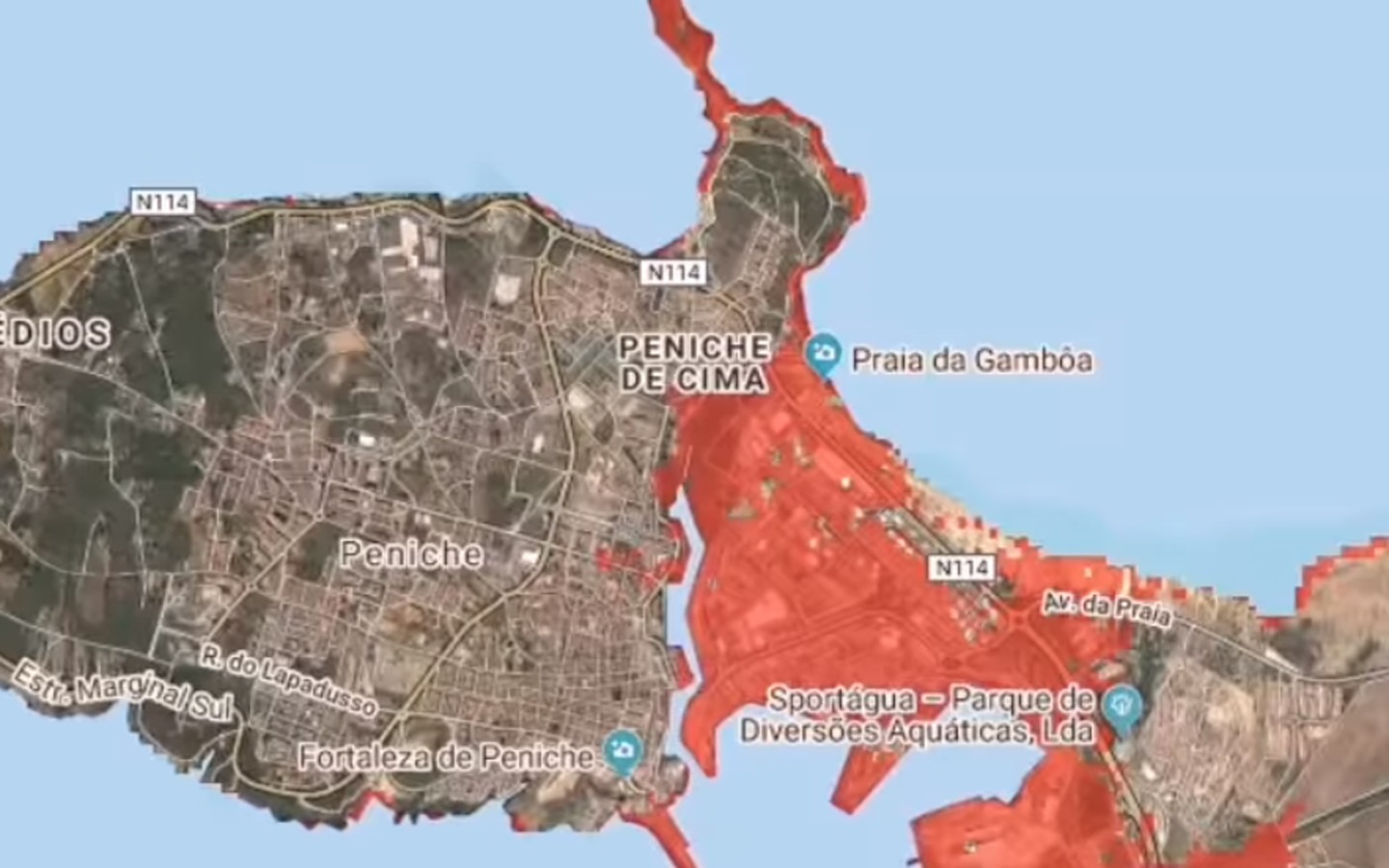 Várias praias desaparecem e Peniche volta a ser uma ilha. A previsão da Climate Central para 2050