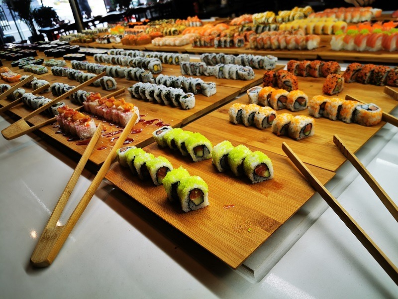 Por aqui é a mistura de culinárias que fica à escolha do comensal, que paga preço único – 10,50 euros no almoço durante a semana e 12,50 no jantar ou aos sábados, domingos e feriados – e pode servir-se de massas ou arrozes de China; sushis, niguiris e sashimis do Japão; e até bacalhau com natas de Portugal. “E futuramente vamos ter cozinha brasileira”, antecipa Guilherme (nome que assumiu na tradução para o português). A nova vertente, conta, vai acontecer através do tradicional rodízio de churrasco. “Assim dá para todas as idades”, acredita.