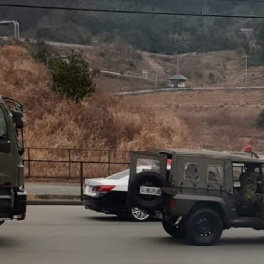 O autocarro que transportou o grupo de infetados com Coronavírus fez a viagem escoltado por dois veículos da polícia e outros dois militares, que transportaram a bagagem, e uma ambulância. As imagens respeitam ao momento da chegada ao hospital.