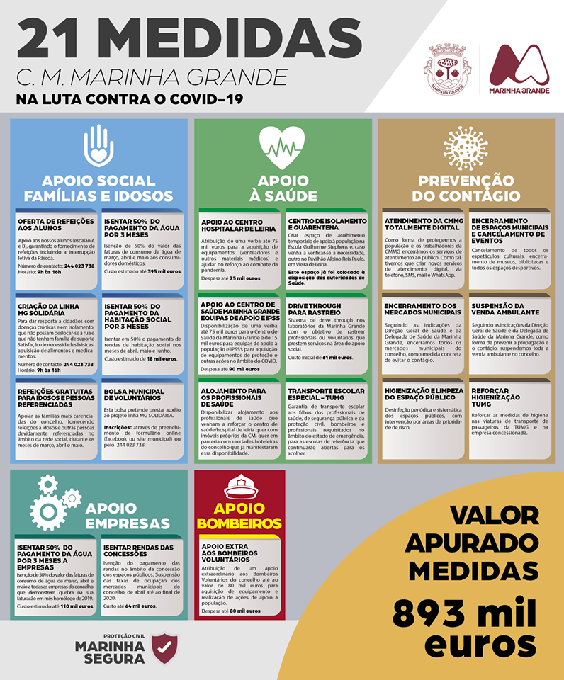 A isenção de 50% do pagamento da água nos próximos três meses para particulares e empresas são algumas destas medidas que pode consultar nesta infografia divulgada pelo município.