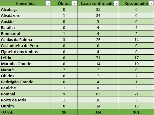 Batalha, Castanheira de Pera, Nazaré e Óbidos não têm casos ativos.