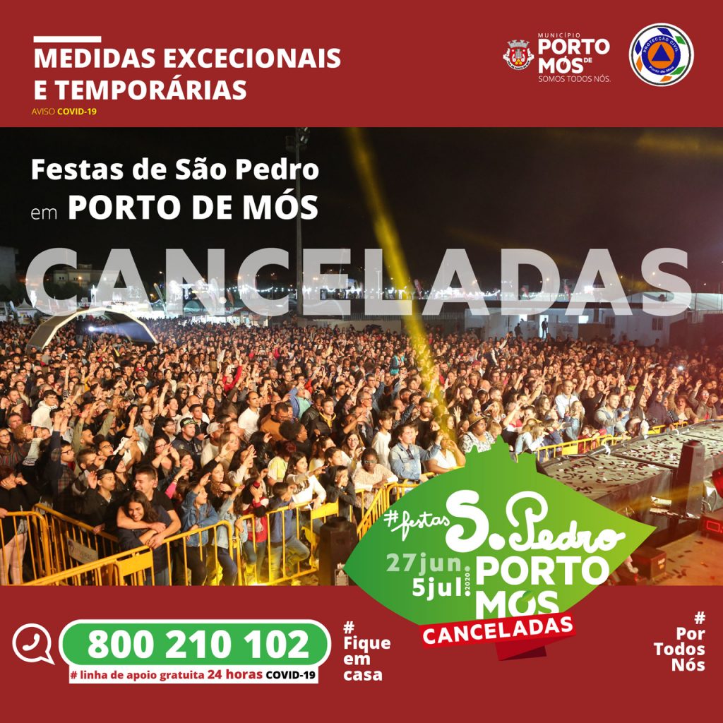 As tradicionais festas de São Pedro, que deviam acontecer entre 27 de junho e 5 de julho em Porto de Mós, foram canceladas no âmbito das medidas excecionais e temporárias adotadas pelo Governo, devido à crise pandémica Covid-19.