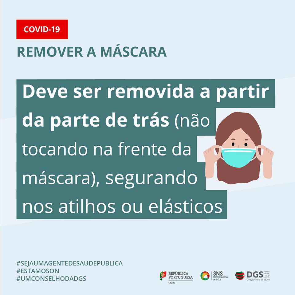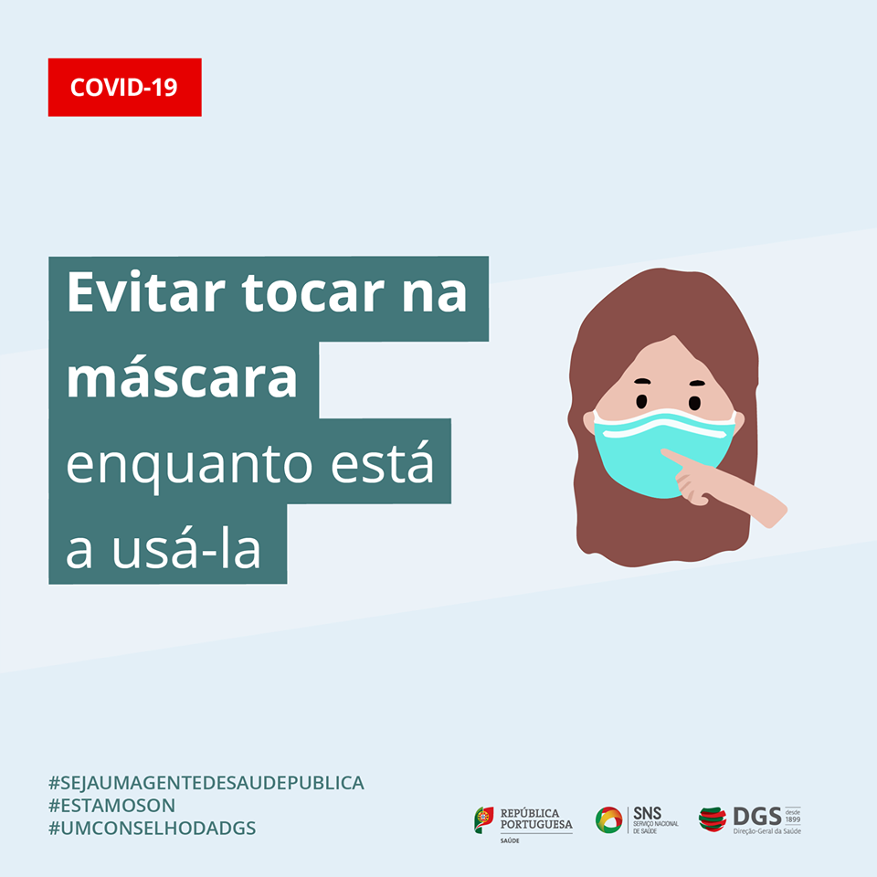 - Não tocar na máscara e caso tal aconteça higienizar imediatamente as mãos;