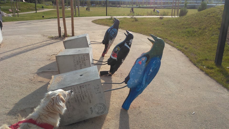Os corvos que moram há um ano no jardim da Almuinha Grande, em Leiria, não têm escapado a diversos atos de vandalismo. Esta quarta-feira, apesar de estarem assentes em pesados blocos de cimento, foram encontrados tombados, registando-se algumas peças partidas. O Município decidiu entretanto reinstalar as obras noutro espaço da cidade.