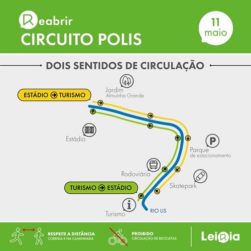 Por enquanto sem bicicletas, assim vai reabrir esta segunda-feira, 11 de maio, o percurso Polis em Leiria. Encerradas desde março, as margens do Lis voltam a estar acessíveis a caminhadas e corridas, mas com novas regras de utilização.