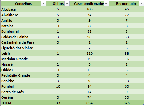 Na região de Leiria, foram ainda detetados desde ontem mais 18 casos de infeção – oito em Ourém, quatro em Leiria, quatro em Peniche e dois no Bombarral -, o que perfaz um total de 654 casos.