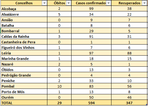 Cinco novos casos em Caldas da Rainha, um em Óbidos, outro em Pombal e um último em Porto de Mós foram registados desde ontem na região de Leiria (distrito de Leiria e concelho de Ourém).