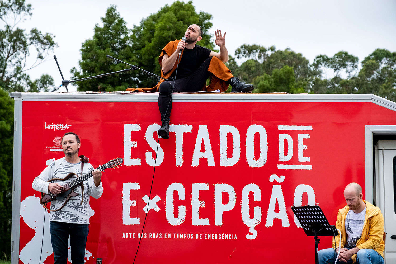 Depois de ter sido obrigada a alterar a programação prevista, por falta de permissão para atuar na via pública, a organização do festival obteve luz verde para estender os espetáculos para lá dos lares, onde “Estado de Excepção” se tem apresentado nas últimas semanas.