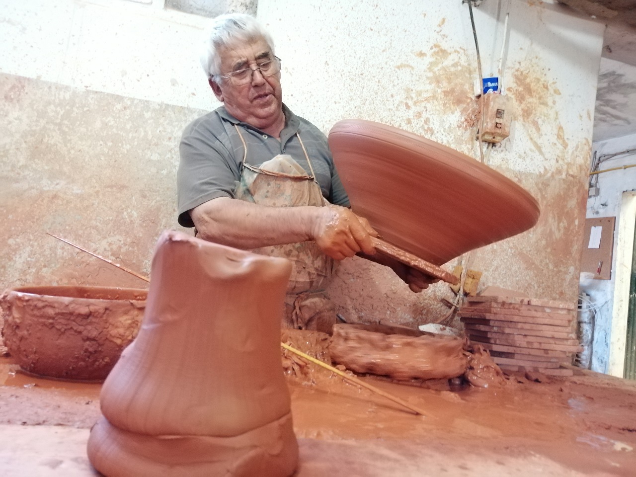 Rui Silva recebe-nos com simpatia, feliz por voltar a trabalhar após o fecho imposto pela pandemia. Ao fundo, o pai, Manuel, trabalha na roda de oleiro. “O futuro não é fácil, porque ninguém quer formar-se oleiro”, lamenta Rui, temendo o fim da tradição familiar. Mas este momento é de reagir. “Já começaram a aparecer turistas, mas nada como antes”. Estrangeiros nem vê-los e o verão era habitualmente deles. “Todos os dias tinha pessoal aí”. Para compensar, os clientes portugueses são mais. “Agora fazemos mais peças para jardim, vasos, taças, jarras… Com o confinamento, as pessoas começaram a olhar mais para os jardins e as plantas”.