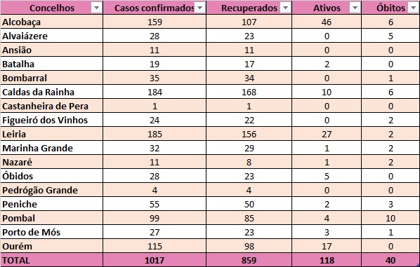 Quantos às recuperações, há nota de três doentes recuperados em Caldas da Rainha, reduzindo para dez o número de ativos, e um na Nazaré. São já 859 os doentes recuperados.