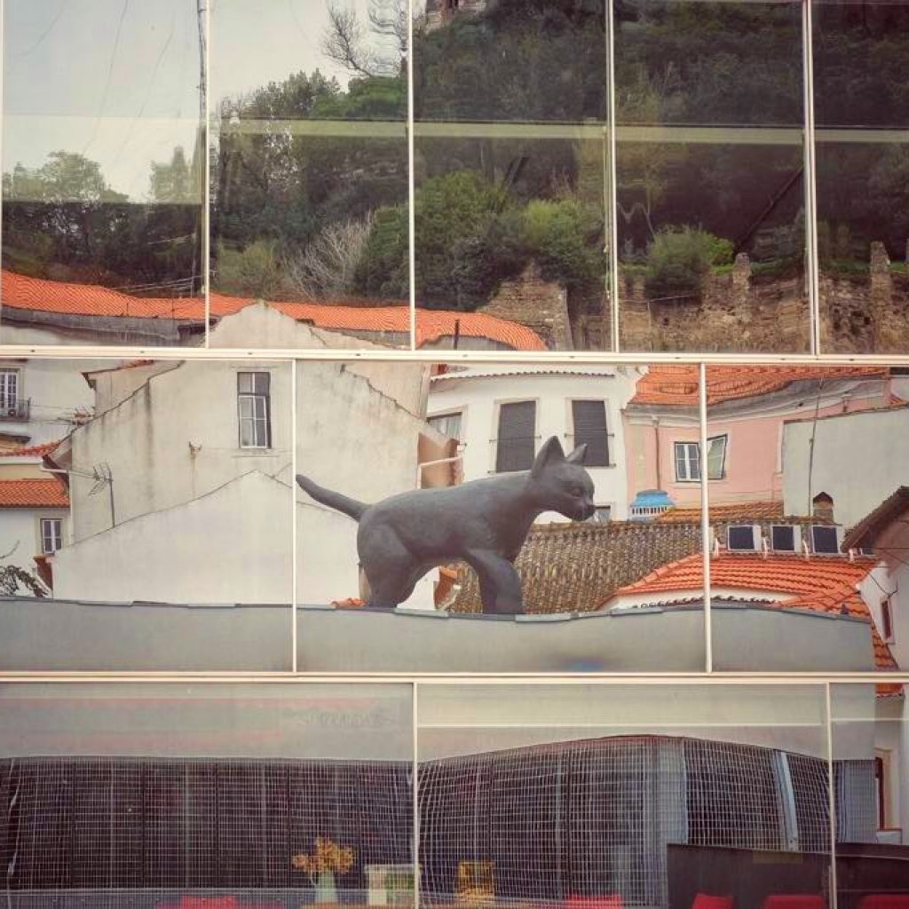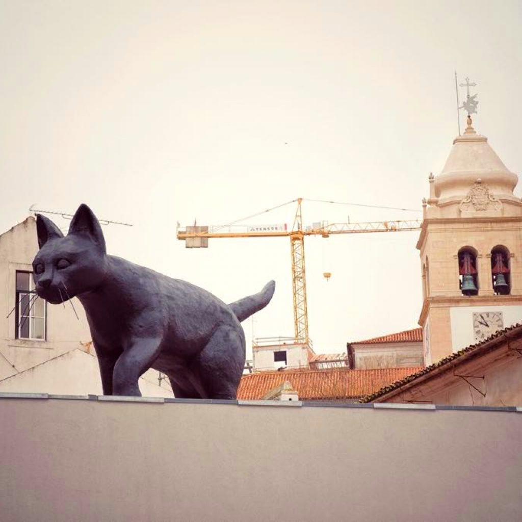 Quem passa pelo Centro Cívico de Leiria não fica indiferente à escultura que marca a paisagem deste ponto da rua Direita. Um gato preto, colocado na cobertura do edifício, recorda a icónica imagem dos passeios destes felinos pelos telhados da cidade.