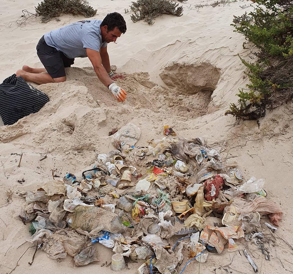 Foi numa das idas à praia de Peniche de Cima para fazer bodyboard, que Manuel e Lídia Nascimento se depararam com um saco preto degradado enterrado na areia. “Fomos escavando e encontrando cada vez mais lixo armazenado num buraco nas dunas. Escavámos cerca de 62 cm em profundidade”, conta Manuel Nascimento ao REGIÃO DE LEIRIA.