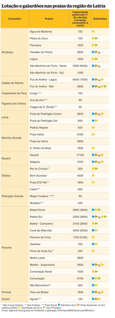 Baleal Sul, em Peniche, e Foz do Arelho-Mar, nas Caldas da Rainha, são as únicas classificadas com quatro galardões: bandeira azul, praia acessível, qualidade de ouro e zero poluição.