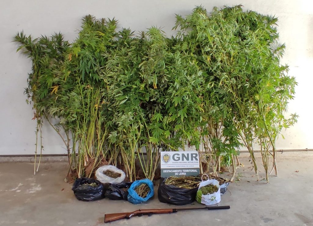 As buscas desenvolvidas pela GNR de Leiria resultaram na apreensão de um total de 103 plantas de cannabis, cerca de 3kg de folha e cabeça de cannabis – equivalentes a 1.252 doses de haxixe – e de uma arma de fogo sem documentação.