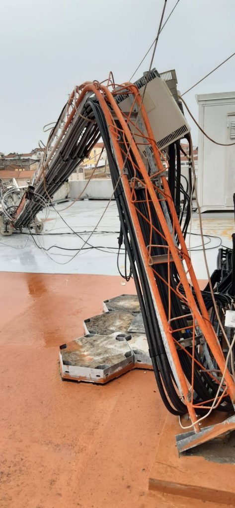 Embora a torre colocada no topo do edifício-sede da rádio, na avenida Combatentes da Grande Guerra, tenha ficado destruída, a antena de link não sofreu danos, explica o responsável. A equipa está a ultimar a sua montagem com recurso a um tubo telescópio com nove metros para conseguir enviar o sinal para repor a emissão via rádio.