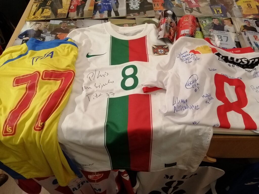 Ofereceu a camisola que vestiu quando foi à seleção nacional, igualmente com o número 8, mas sem nome na camisola. “Há cinco anos, as camisolas do futebol feminino não tinham nome. É algo recente, com dois, três anos. Agora já há nome da jogadora mas ainda não há nome ou data do jogo como no futebol masculino, em que qualquer particular tem sempre alguém, no momento, a fazer a estampagem das camisolas”, explica.