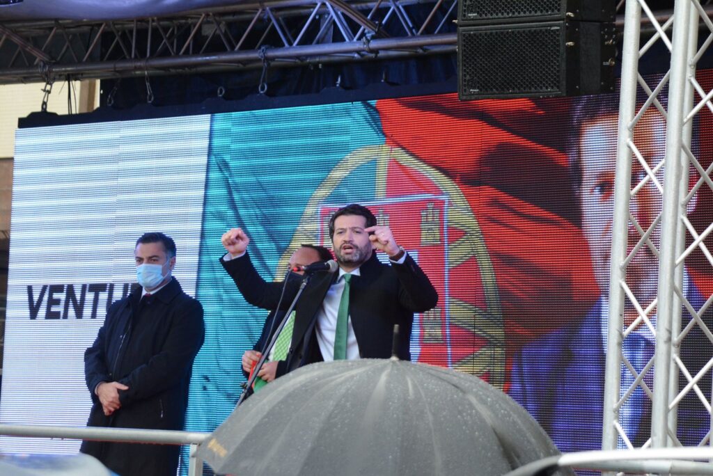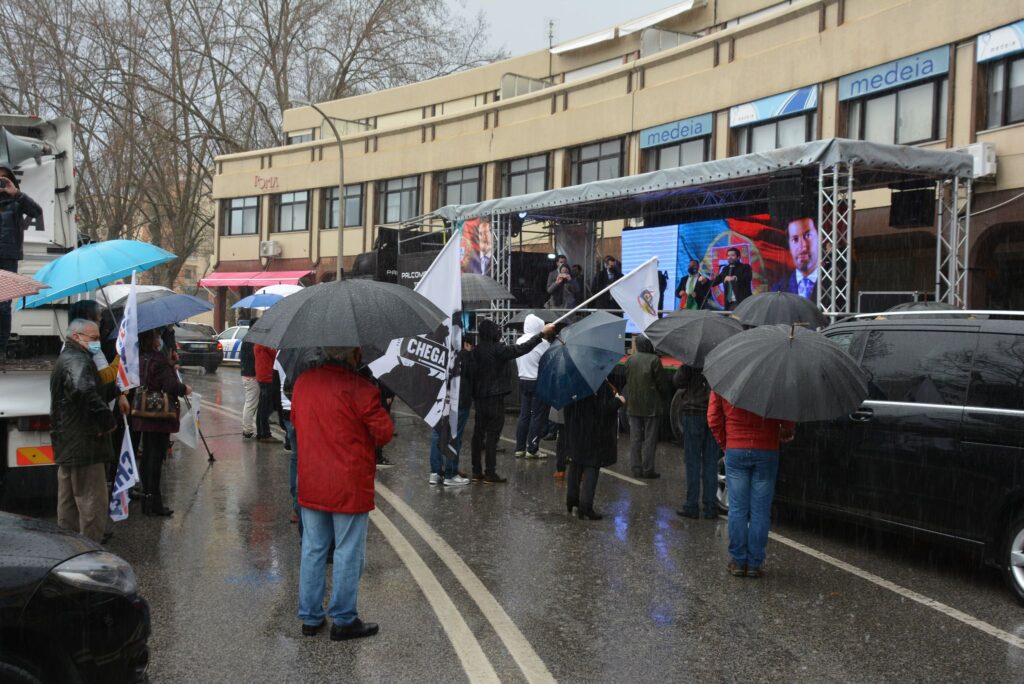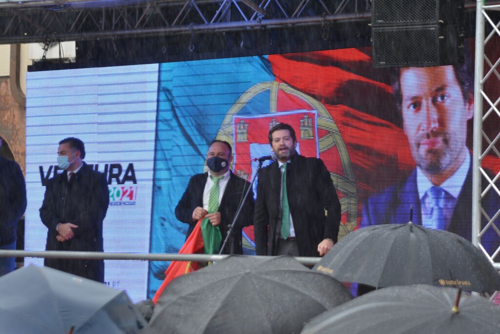 O candidato apoiado pelo Chega, partido da extrema-direita parlamentar que o próprio lidera, esteve na cidade do Lis para inaugurar a sede distrital, e para realizar um comício “drive-in”. A chuva foi companhia da campanha inscrita nas palavras do líder do Chega.