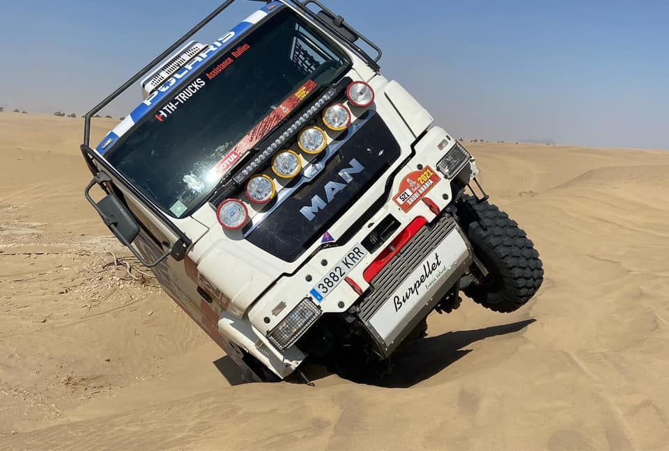 O veículo quase que capotou e “com muito pouca pressão nos pneus traseiros perdemos a traseira do camião”. Mais à frente, ao “voar” numa duna, o camião embateu na areia e quase deitou por terra o sonho do Dakar. O incidente levou a equipa a perder mais de oito horas face ao primeiro e a “chegar de noite na última travessia de dunas”, o que “foi tenso pra caramba”, admite Nuno Fojo.