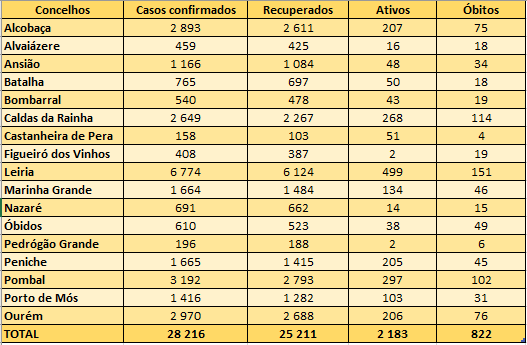 Até ao momento, faleceram no distrito de Leiria e concelho de Ourém 822 pessoas com infeção confirmada pelo novo coronavírus.