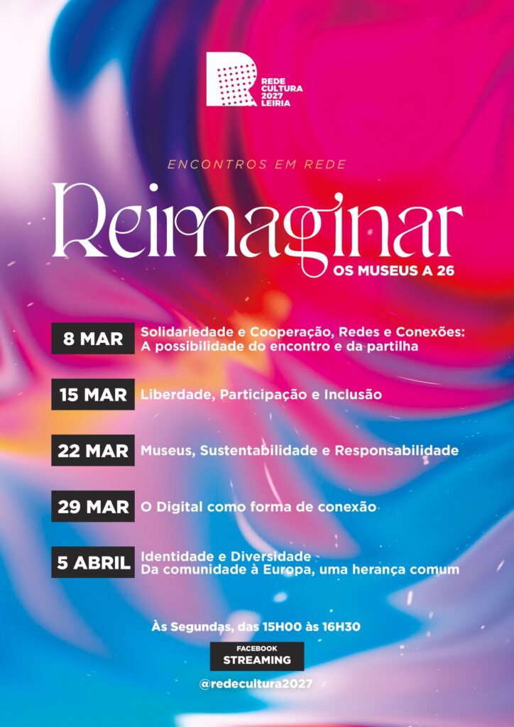 O ciclo é transmitido pelo Facebook da Rede Cultura 2027 e inicia a 8 de março, com o tema “Solidariedade e Cooperação, Redes e Conexões: a possibilidade do encontro e da partilha” e os convidados Encarna Lago González, diretora da Red Museística da Diputación Provincial de Lugo, da Galiza, e Clara Camacho, técnica superior da Direção-Geral do Património Cultural.