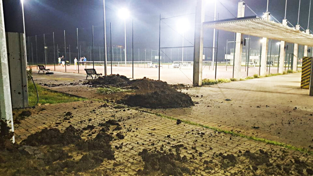 Já no dia 26 de novembro de 2017, o arguido arremessou para o interior de dois campos de ténis “duas garrafas de vidro contendo creolina e dejetos de animais, estragando o piso dos campos e provocando um odor nauseabundo no recinto do clube, impedindo o normal acesso e utilização do mesmo por terceiros.