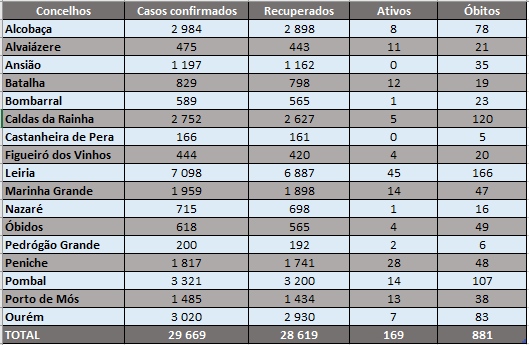 Assim, desde o início da pandemia, o distrito de Leiria e concelho de Ourém contabilizaram 29.669 casos confirmados de infeção pelo novo coronavírus.