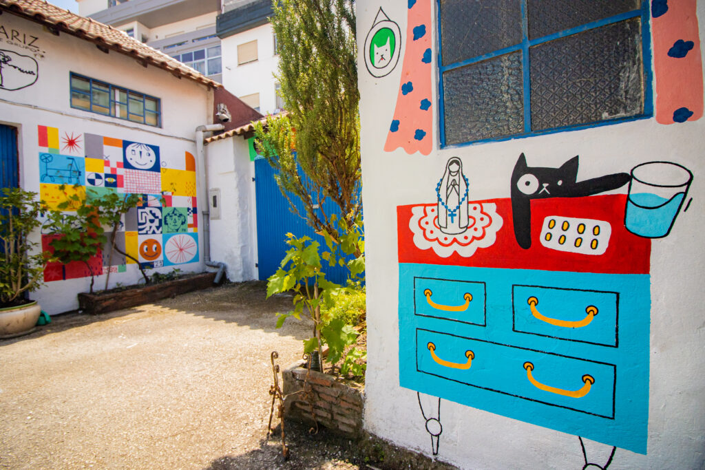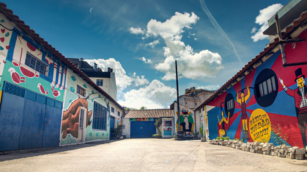 O beco sem saída conhecido como “pátio do Jordão”, na rua Tenente Valadim, em Leiria, ganhou uma nova vida graças às pinturas de cinco artistas da região de Leiria.