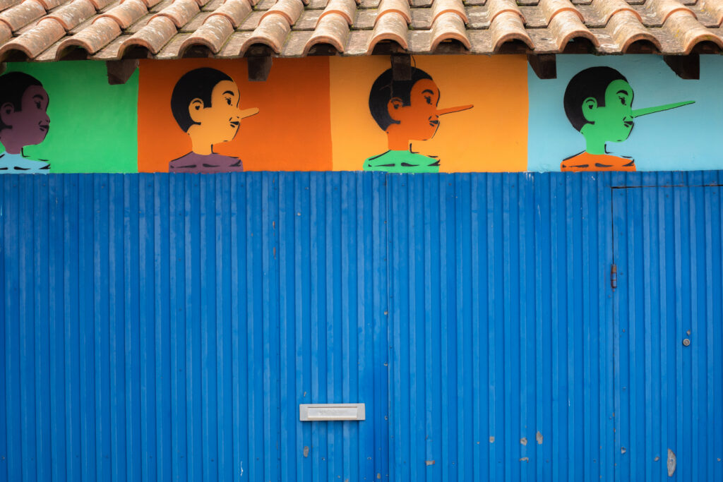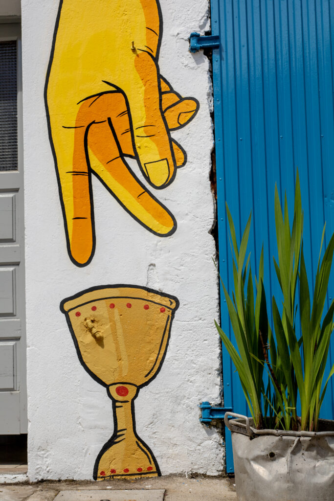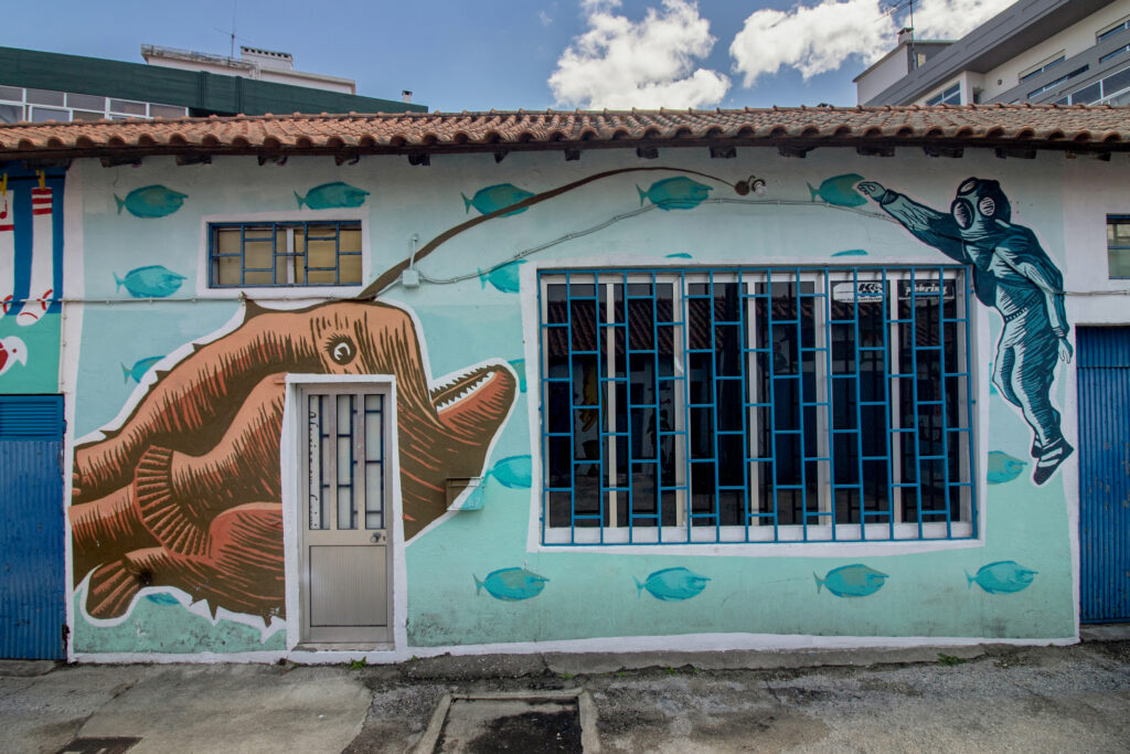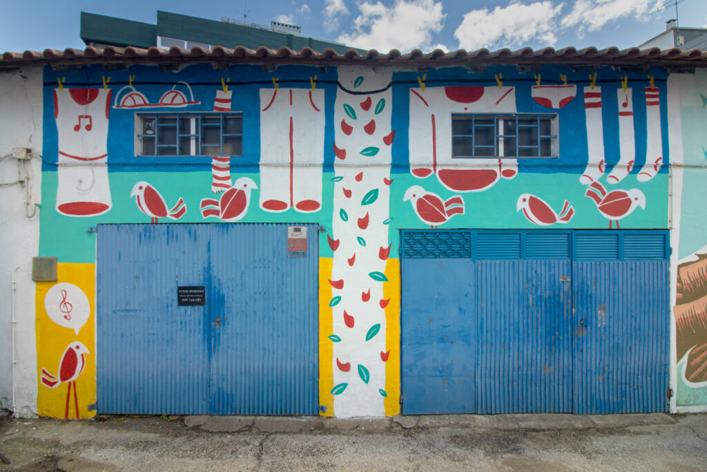 A parede d’”O Nariz” já tinha sido pintada há dois anos, por Lisa Teles, e a senhoria responsável pelos restantes espaços veio agora sugerir que dessem continuidade à ideia em todo o beco.