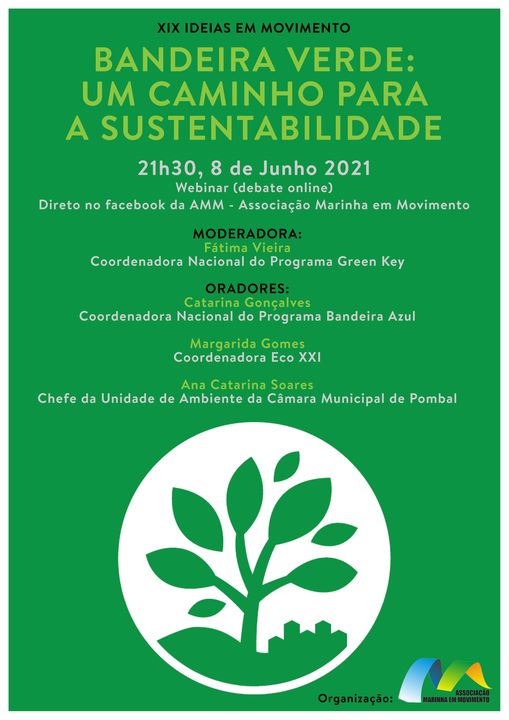 “Bandeira Verde: um caminho para sustentabilidade” é o tema do webinar que junta hoje “à mesa” Ana Catarina Soares, chefe da Unidade da Ambiente da Câmara de Pombal, Catarina Gonçalves, coordenadora Nacional do Programa Bandeira Azul na Associação Bandeira Azul da Europa, e Maria Margarida Gomes, autora e coordenadora dos projetos EcoXXI e Eco-Freguesias XXI.