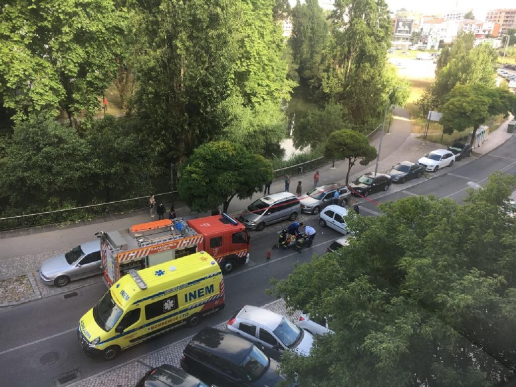 O acidente ocorreu cerca das 8h30, na rua Anzebino da Cruz Saraiva, frente ao Edifício S. Miguel, perto do parque da Fonte Quente, tendo sido mobilizados para o local os Bombeiros Sapadores de Leiria, com sete operacionais e duas viaturas, a Ambulância de Emergência Médica (AEM) do INEM e a PSP.