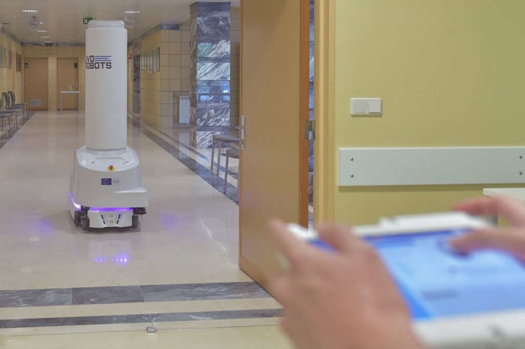 A equipa do CHL pode optar entre o funcionamento manual ou automático do robô. Em modo manual, é comandado através de um tablet. Em modo automático, após o mapeamento das áreas a desinfetar, pode operar num máximo de dez salas. A intensidade do feixe de luz UVC aumenta à medida que o robô se aproxima das superfícies “críticas”.