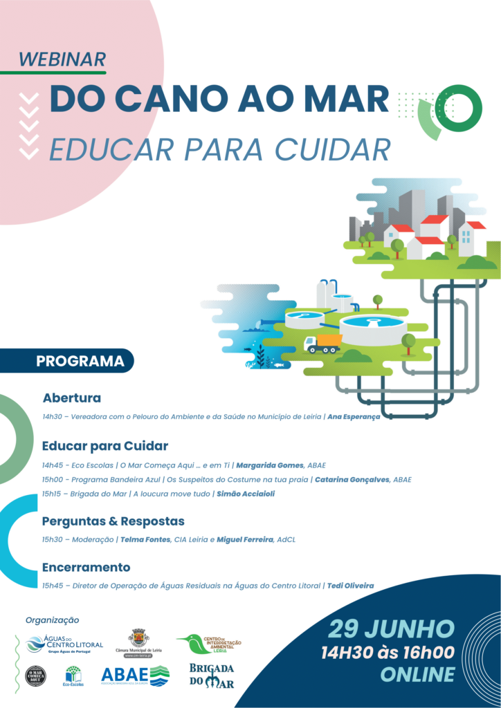 Dedicado ao tema “Do cano ao mar | Educar para cuidar”, o ‘webinar’ dinamizado pelo Município de Leiria, através do Centro de Interpretação Ambiental de Leiria, acontece já amanhã, terça-feira, entre as 14h30 e as 16 horas.