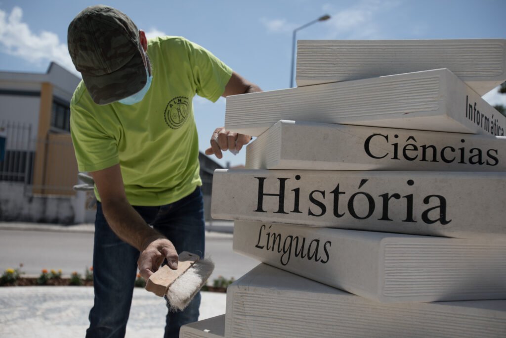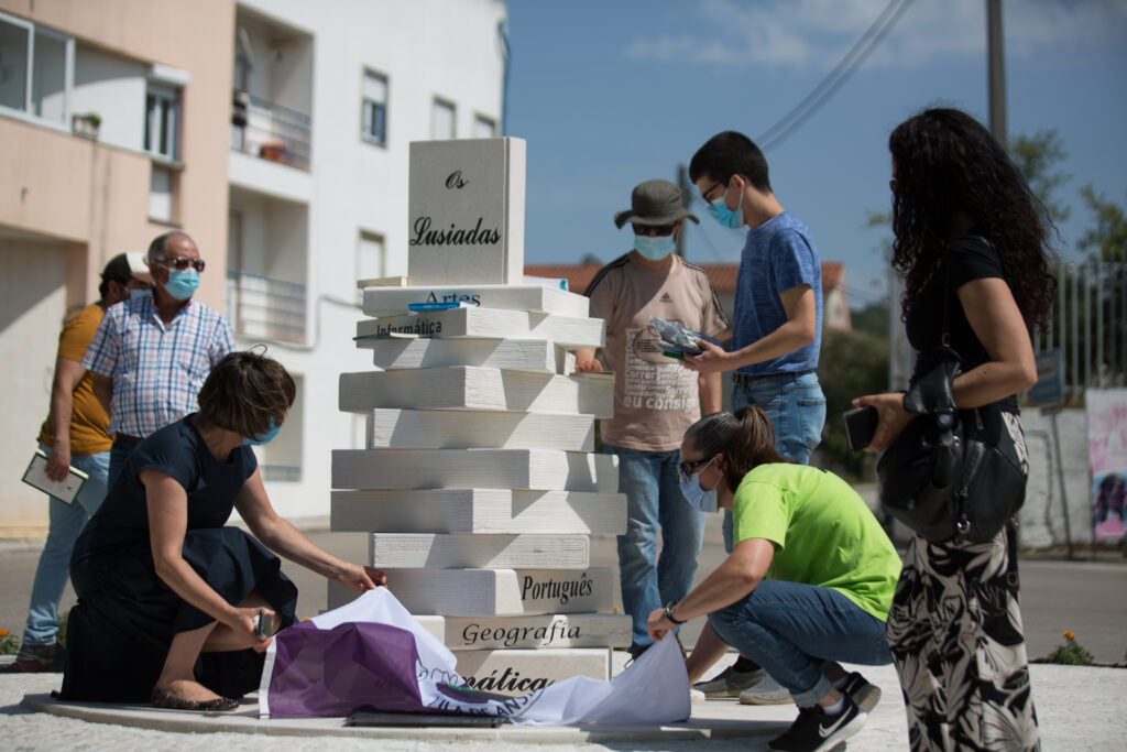 “Viagem ao Conhecimento” foi a primeira intervenção inaugurada, no dia 10 de junho, na Praça Luís de Camões, em Ansião. O tema do conhecimento foi retratado através de “livros” de pedra empilhados, dedicados a distintas disciplinas, terminando com “Os Lusíadas”.