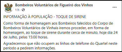 Além desta homenagem, que acontece às 15 horas, as associações e corporações hastearam as bandeiras a meia haste, em resposta a uma solicitação da Liga dos Bombeiros Portugueses (LBP).