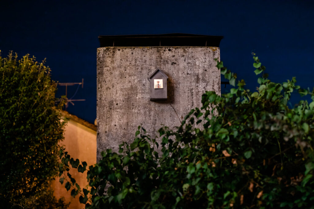 Cada vez mais uma galeria ao ar livre, Figueiró dos Vinhos é agora casa de mais uma intervenção do artista galego em Portugal. Um trabalho que faz olhar para cima, apresentando-nos aspetos urbanísticos habitualmente ignorados.