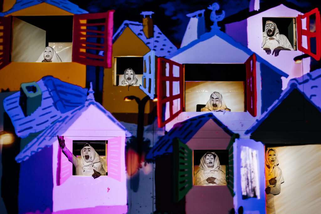 Para mexer com as mentalidades, o consórcio artístico liderado pelo Leirena Teatro junta em palco uma grande máquina cénica com música ao vivo de Surma, desenho em tempo real do artista Nuno Viegas e sete atores num espetáculo de teatro físico baseado na técnica da máscara, presente na “forte caracterização do rosto dos atores”. Uma peça “bastante dinâmica” com “surpresa atrás de surpresa”, acrescenta.