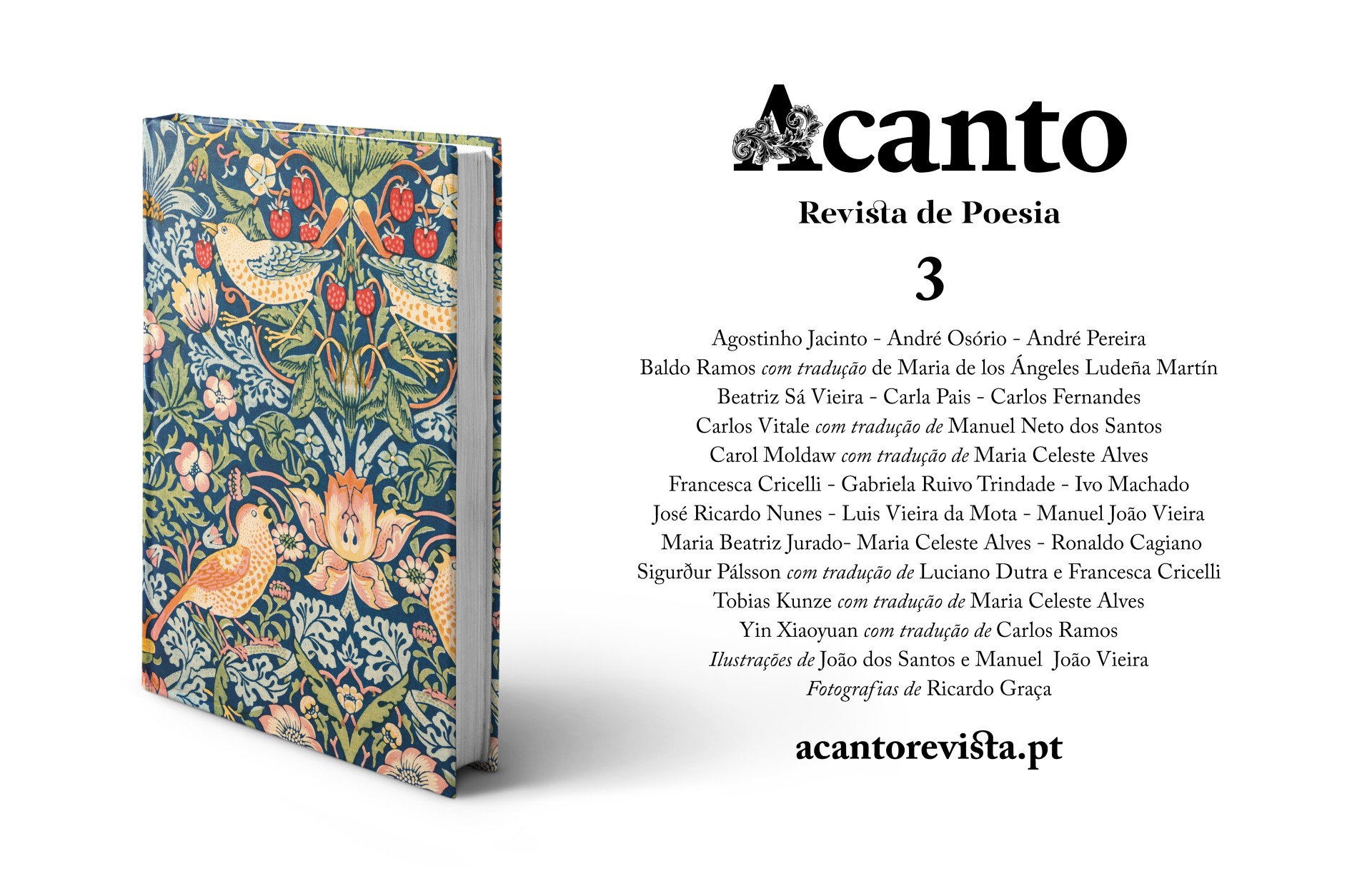 Nesta “Acanto”, editada pela Hora de Ler, de Leiria, participam ainda com trabalhos inéditos Agostinho Jacinto, Baldo Ramos, Carla Pais, Carlos Fernandes, Carlos Vitale, Carlos Moldaw, Francesca Cricelli, Ivo Machado, José Ricardo Nunes, Manuel João Vieira, Maria Beatriz Jurado, Ronaldo Cagiano, Sigurður Pálsson, Tobias Kunze e Yin Xiaoyuan.