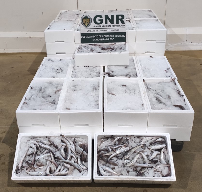 O Subdestacamento de Controlo Costeiro da Nazaré apreendeu esta quarta-feira 255 quilos de pescada subdimensionada em Leiria.
