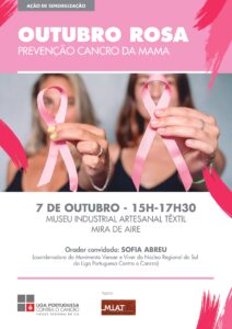 Alertar para a importância da prevenção do cancro da mama é o objetivo da ação de sensibilização que acontece na quinta-feira, dia 7, no Museu Industrial e Artesanal do Têxtil (MIAT), em Mira de Aire.
