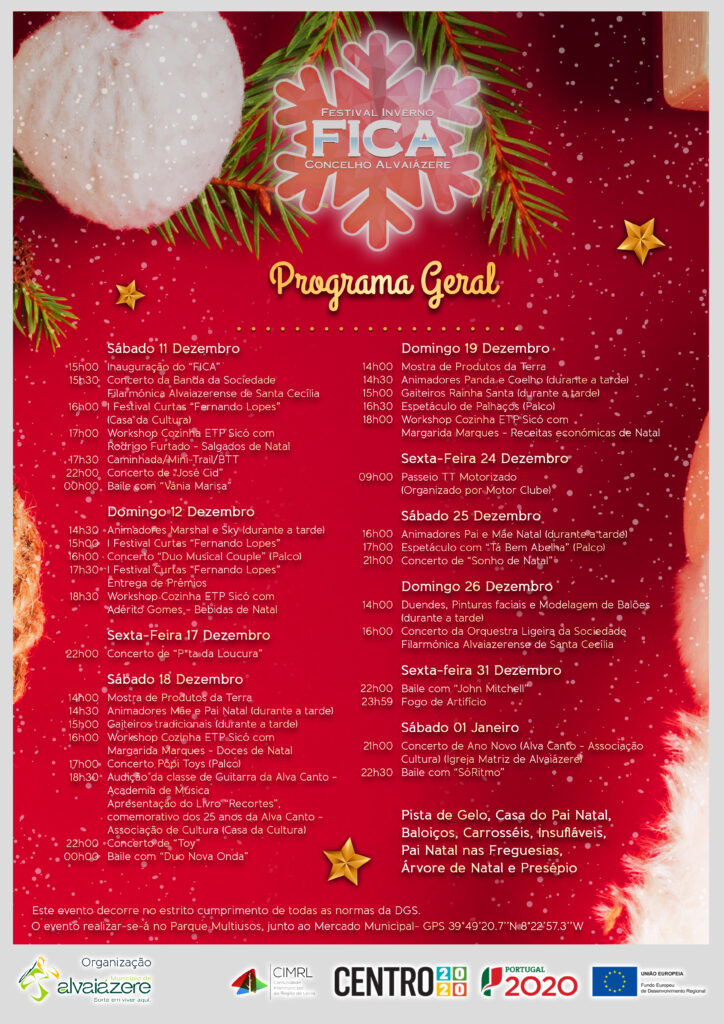 A pensar num “evento atrativo, dinâmico” e diferente das tradicionais iluminações para celebrar o Natal, o município de Alvaiázere criou o FICA -Festival de Inverno do Concelho de Alvaiázere, que arranca este sábado, dia 11, no Parque Multiusos, com muita música, atividades desportivas, workshops, cinema, diversões e solidariedade.