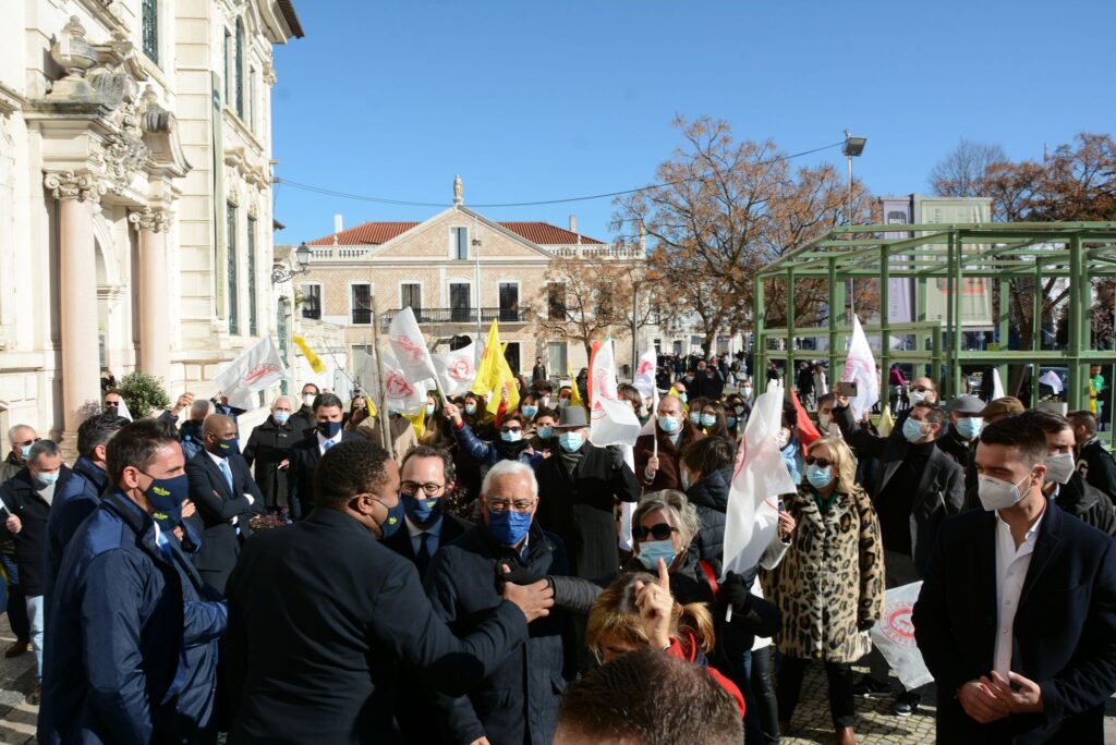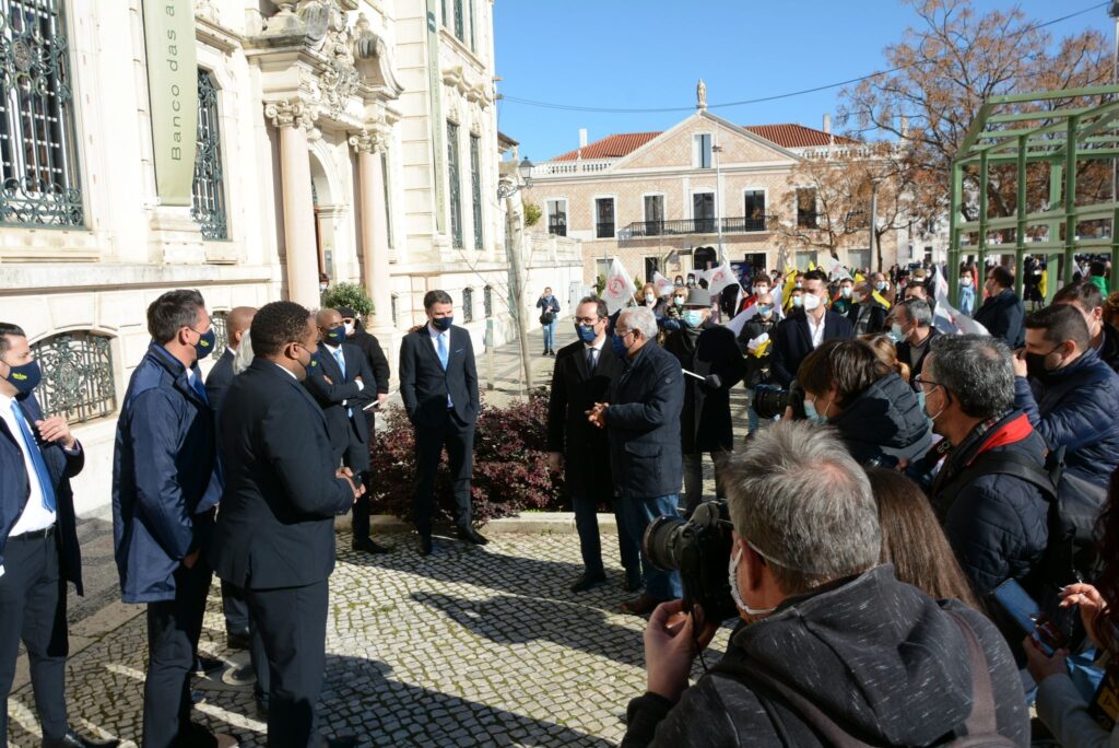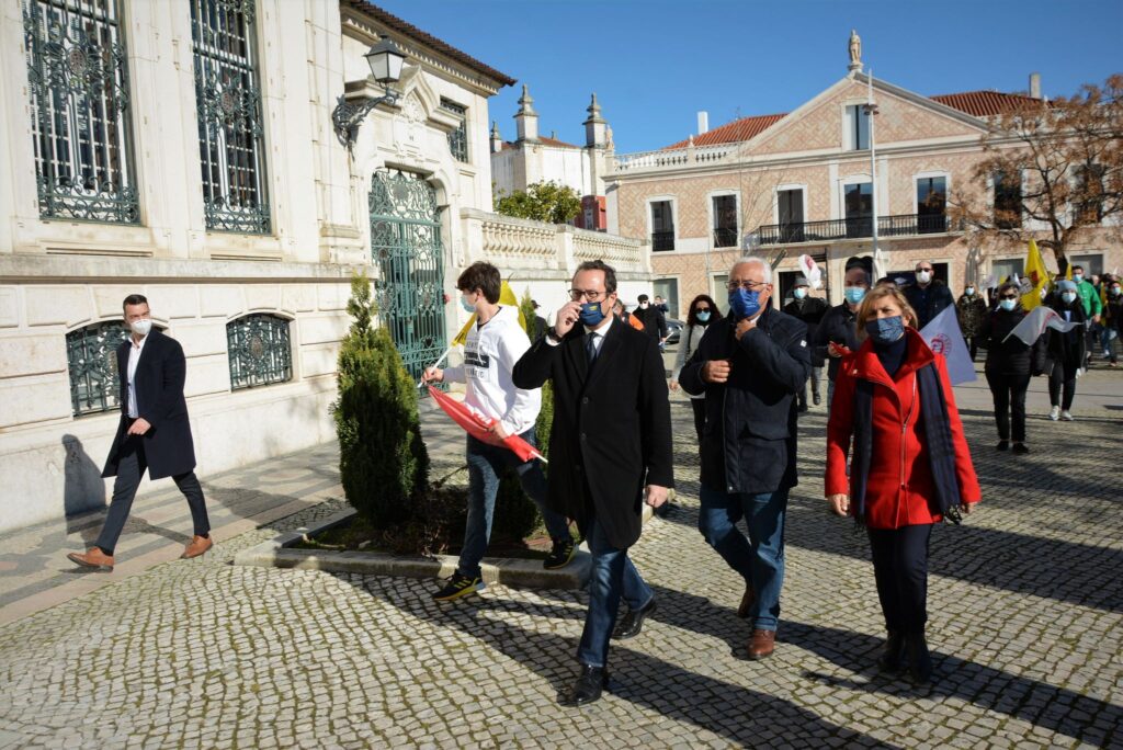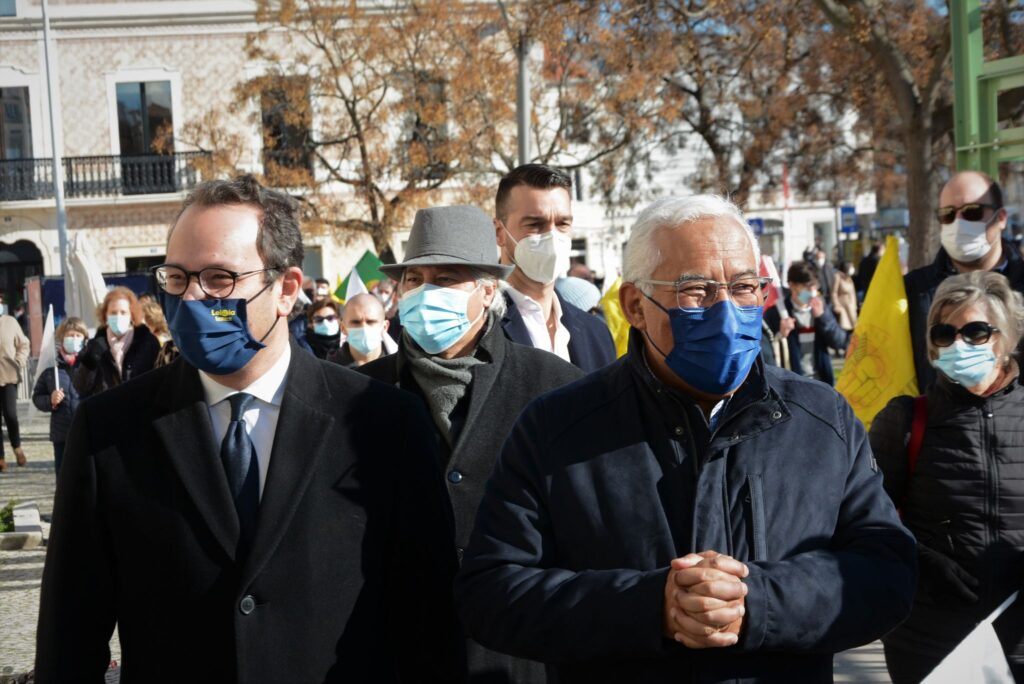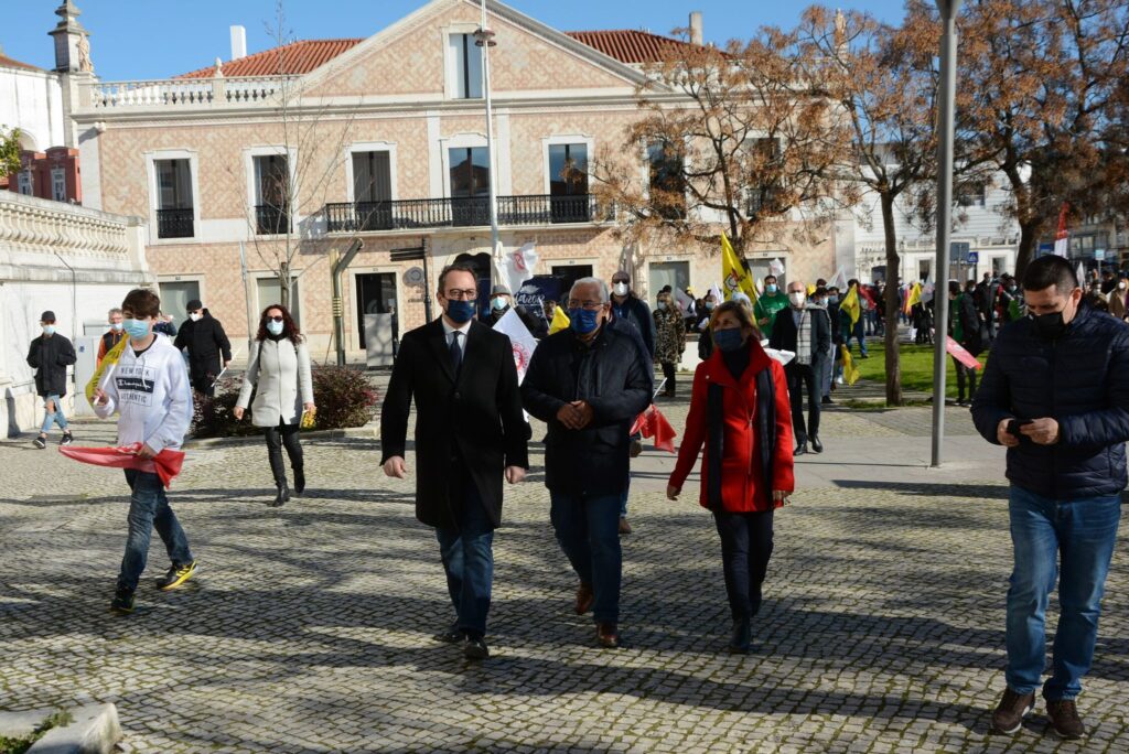 Os elementos que assistiram e participaram na cerimónia de tomada de posse acabaram por se cruzar com a comitiva do partido socialista, liderada por António Costa, que hoje visitou a cidade de Leiria.