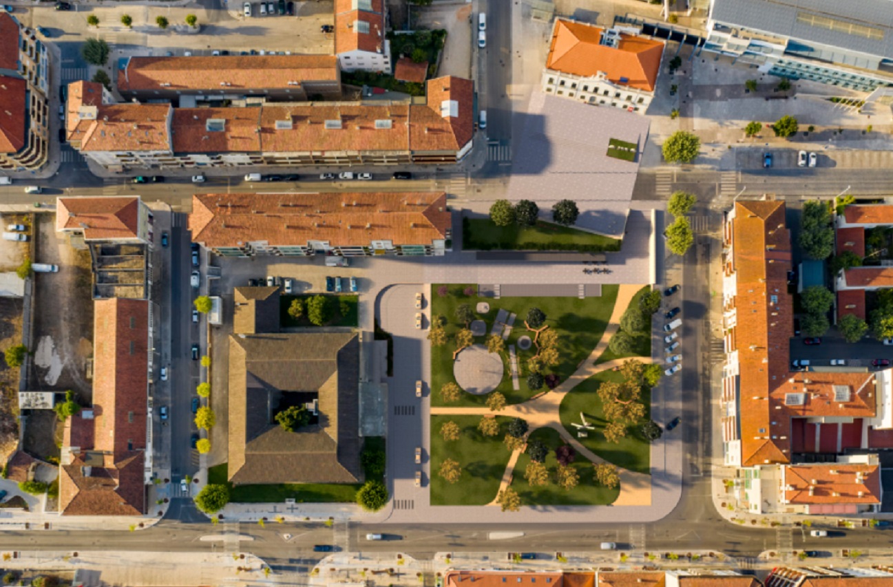 A intervenção “também resultou no arranjo paisagístico da zona frontal ao edifício dos Paços do Concelho, junto ao qual foi construída uma praça, com pavimento em granito”, tendo sido “instalada uma zona de relvado e vegetação arbustiva rasteira, privilegiando a ligação visual com o Castelo”, através da colocação de uma estrutura com o nome de Ourém.