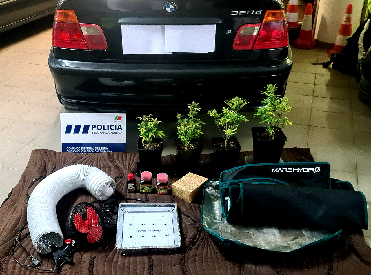No carro, foram encontrados quatro pés de liamba, um tubo de extração, uma ventoinha, equipamentos vários para acentuar o crescimento de tais plantas, fertilizante e uma tenda. O veículo foi também apreendido, tendo o detido sido notificado para se apresentar na segunda-feira perante a autoridade judiciária.