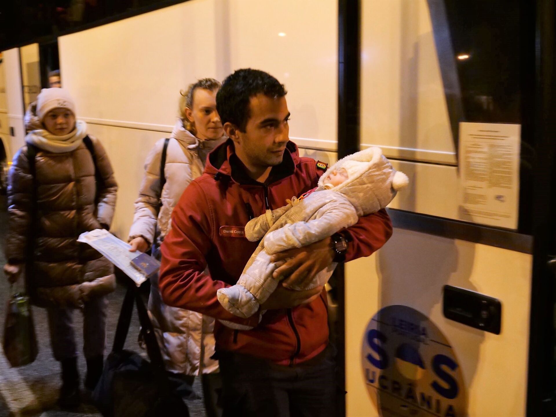 О 21.00 з Польщі, неподалік кордону з Україною, автобус із 51 українськими біженцями прибув на стадіон Лейрії.