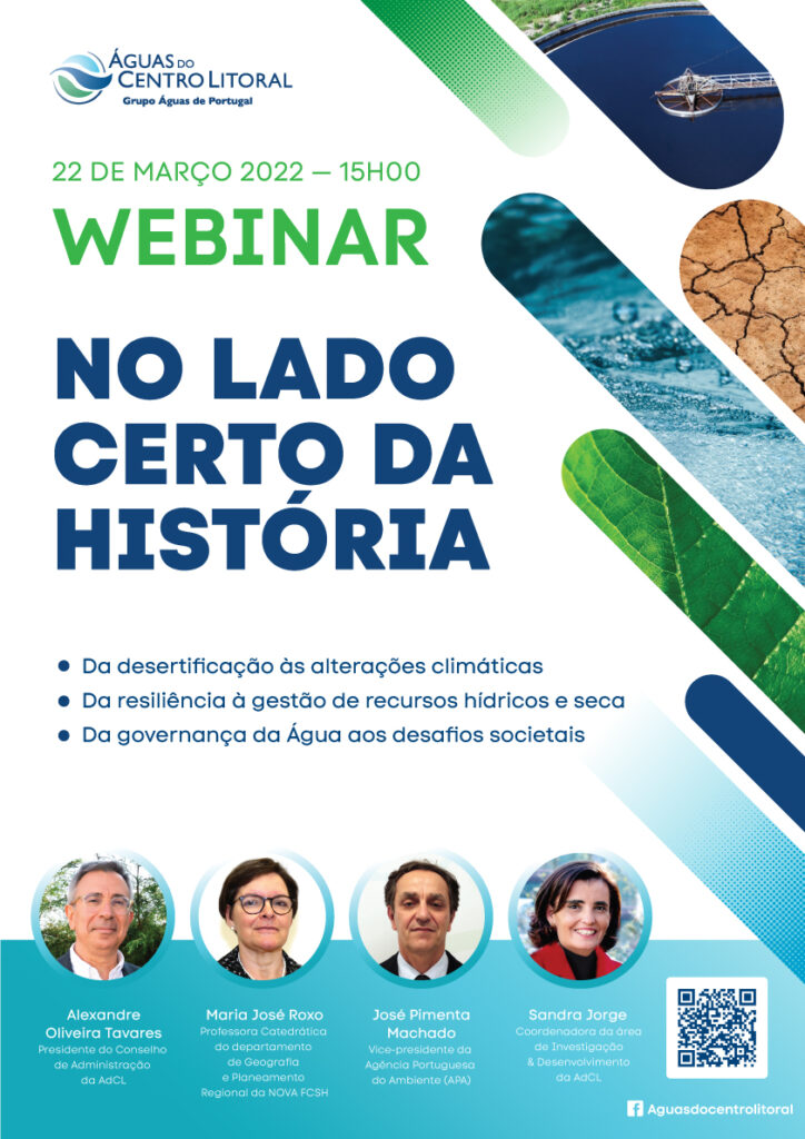 Intitulado “No Lado Certo da História”, o seminário digital acontece às 15 horas e conta com a participação de Maria José Roxo, professora catedrática do departamento de Geografia e Planeamento Regional da Universidade Nova de Lisboa, José Pimenta Machado, vice-presidente da Agência Portuguesa do Ambiente, Sandra Jorge, coordenadora da área de Investigação e Desenvolvimento da AdCL, e Alexandre Oliveira Tavares, presidente do conselho de administração da AdCL.