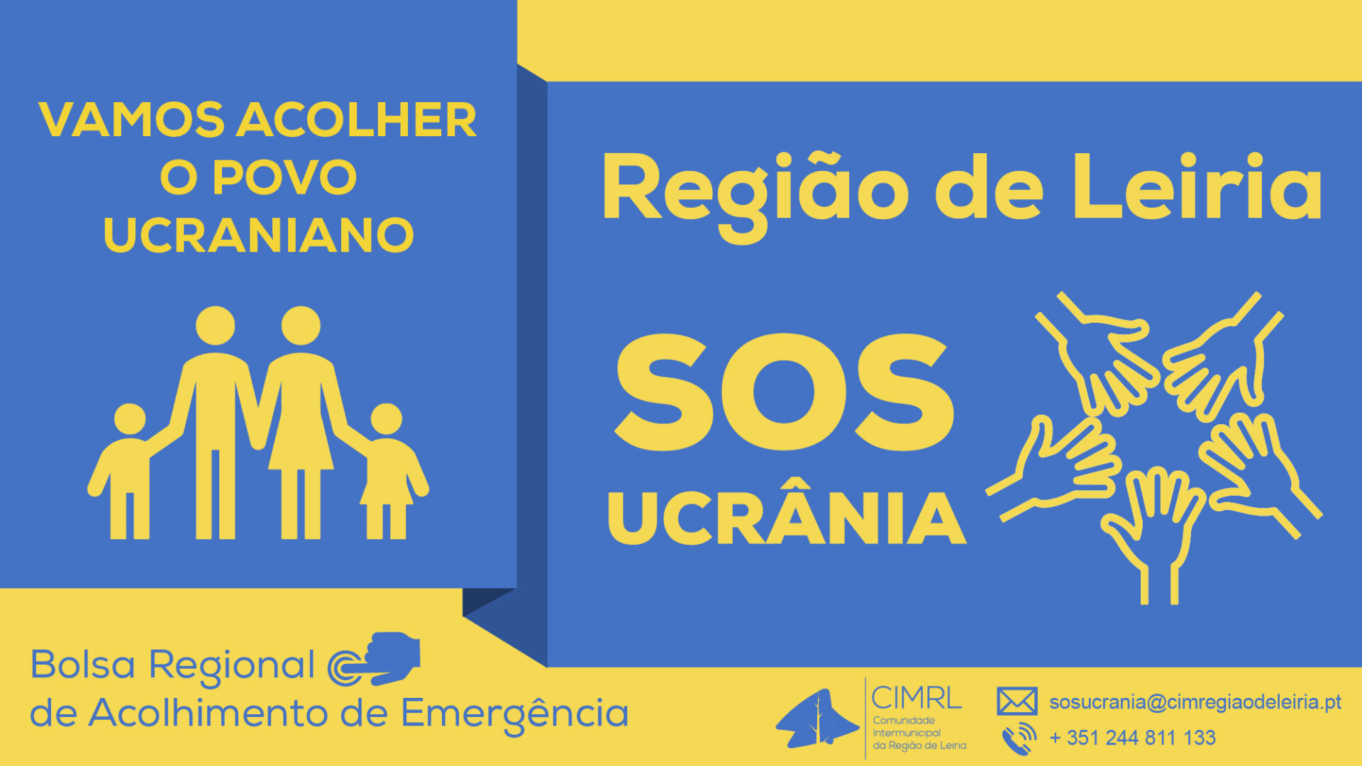 Procurando a melhor articulação das disponibilidades de alojamento e um apoio mais eficaz no acolhimento temporário em Portugal de cidadãos de nacionalidade ucraniana, a Comunidade Intermunicipal da Região de Leiria (CIMRL) lançou “SOS Ucrânia – Região de Leiria”, plataforma de recursos e de alojamentos nos 10 municípios da Região de Leiria. A intenção é, em breve, reunir condições para ajudar um milhar de refugiados. Para se juntar ao esforço, basta preencher o formulário disponível em https://tinyurl.com/yc5uxp8p.