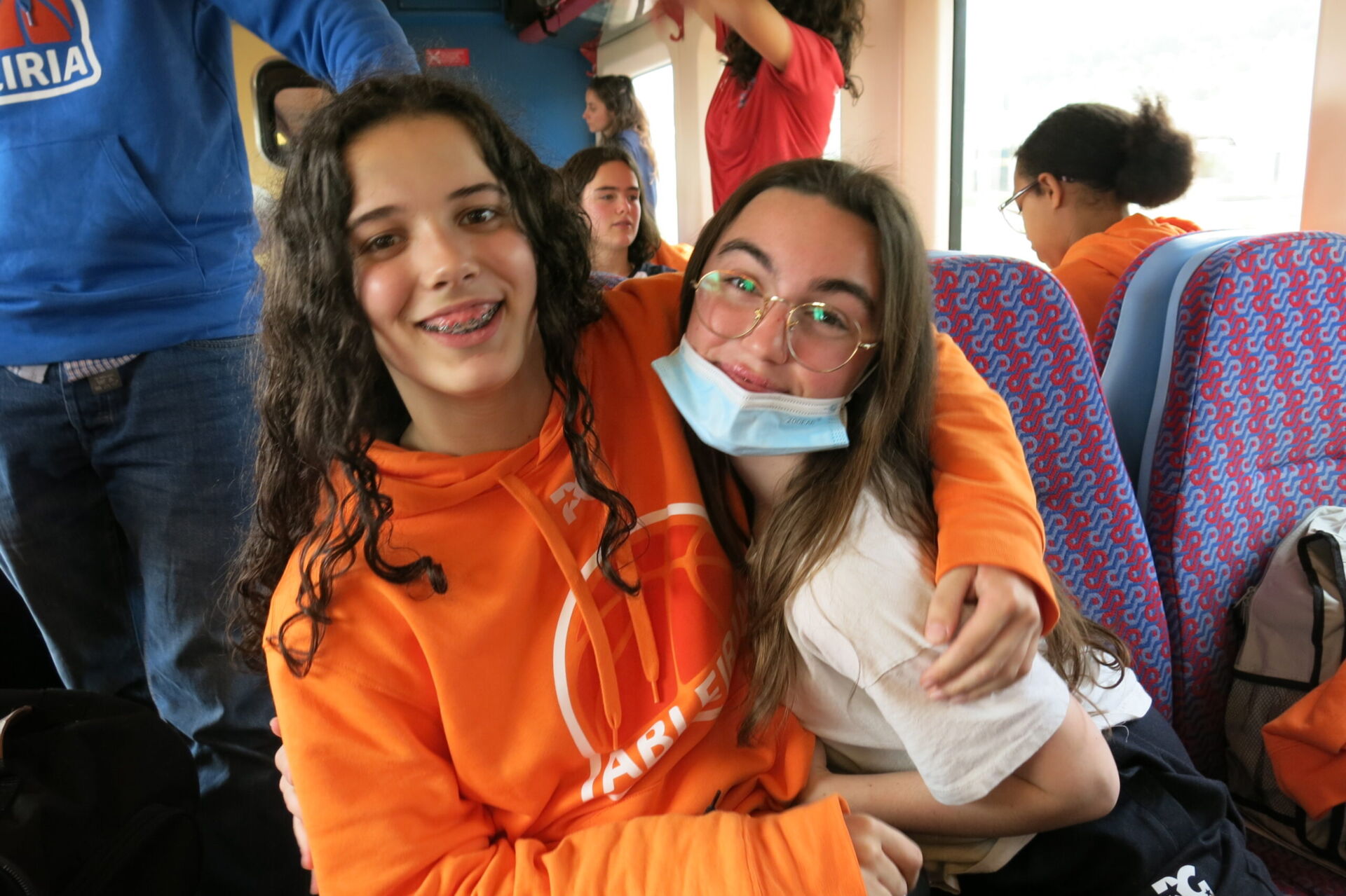 A prioridade dentro do comboio? Comer os lanches que vieram de casa. Logo a seguir, começam as partilhas em forma de conversa, música e boa disposição.