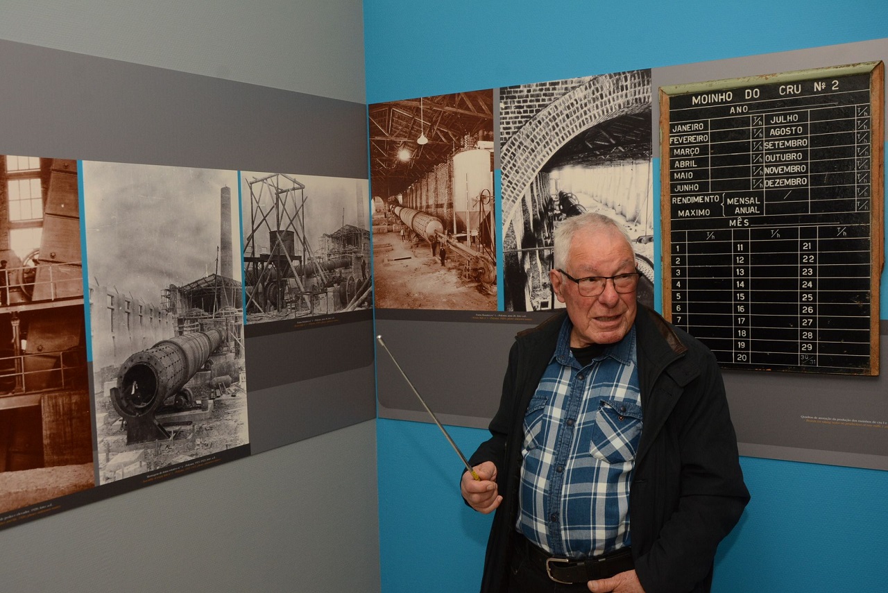 Foi a Rogério Ferreira, de 80 anos, que coube o papel de guiar os visitantes pelo museu, este domingo, 3 de abril. Antigo trabalhador, filho de um dos primeiros operários e residente no bairro da fábrica, guiou um grupo de curiosos pela longa história da produção de cimento, de 1923 à atualidade.